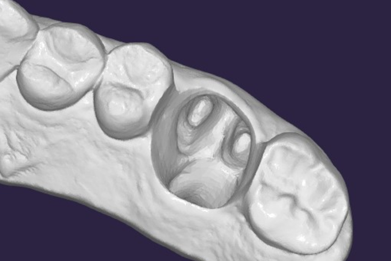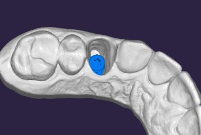 Our ability to do an accurate virtual extraction in our planning software allows us to plan the implant and design the restorations pre-extraction of the natural tooth.
