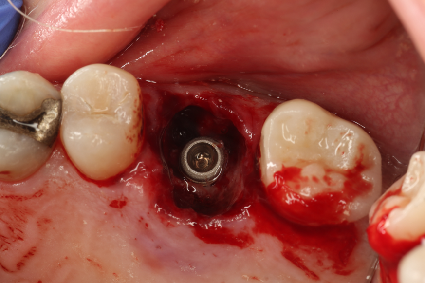 With non-qualifying torque and ISQ values or in cases where the practitioner does not have peace of mind to load the implant immediately, a custom healing abutment is placed.